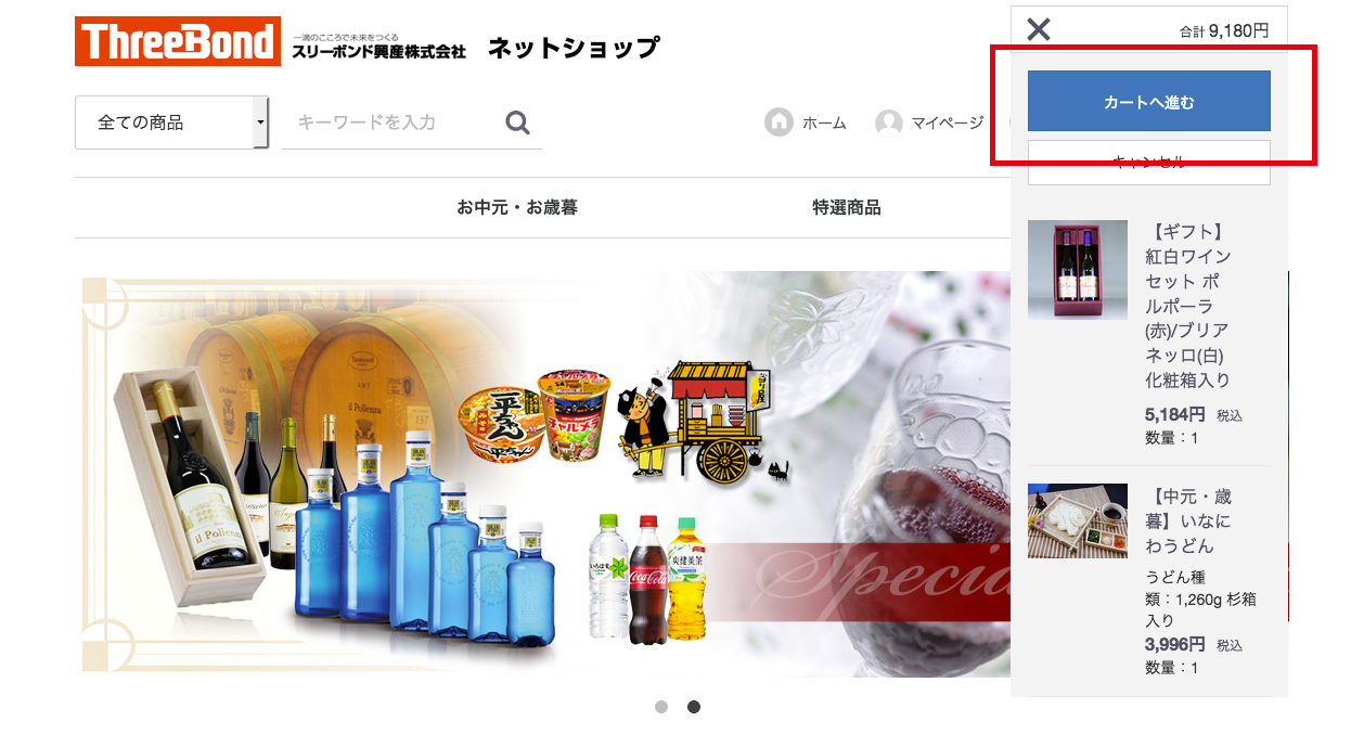 カートに入れた商品はログアウトするまで保持されます。