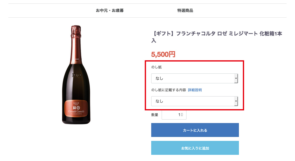 特選商品の中でも「のし紙」の選択ができるものもございます。