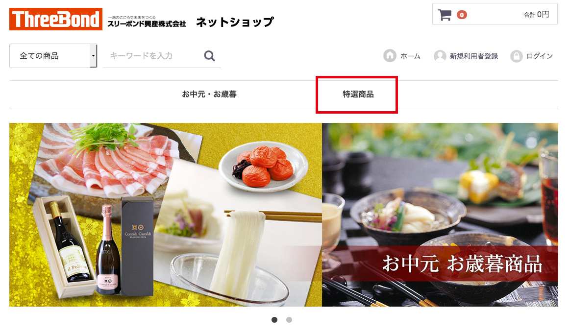 お中元・お歳暮以外でのご利用の場合は必ず「特選商品」のメニュー内にある商品をご購入ください
