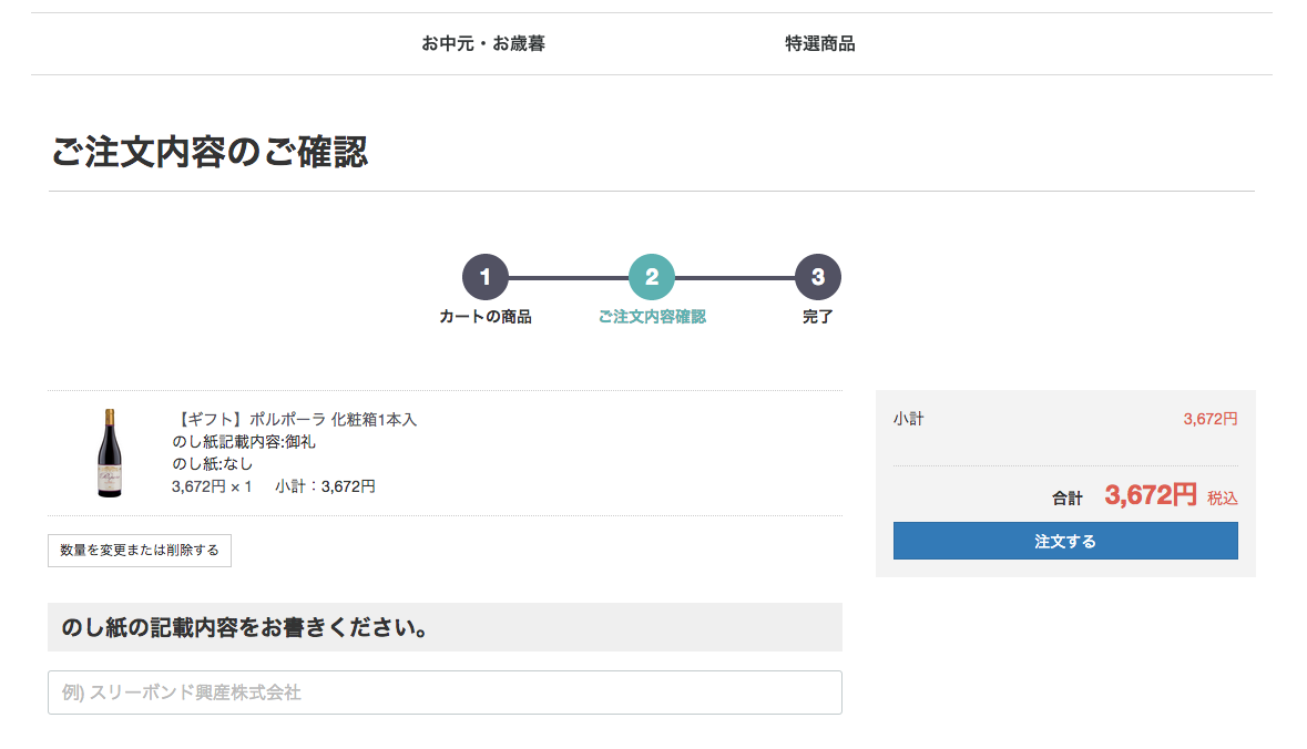商品の購入方法のマニュアルをご参照頂き「ご注文内容のご確認」画面までお進みください。