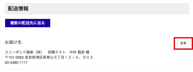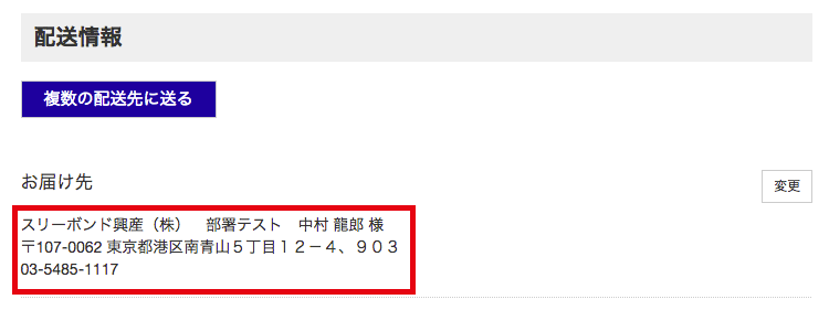 配送先の設定が済みましたら「配送先情報画面」にて内容にお間違いがないか確認してください。
